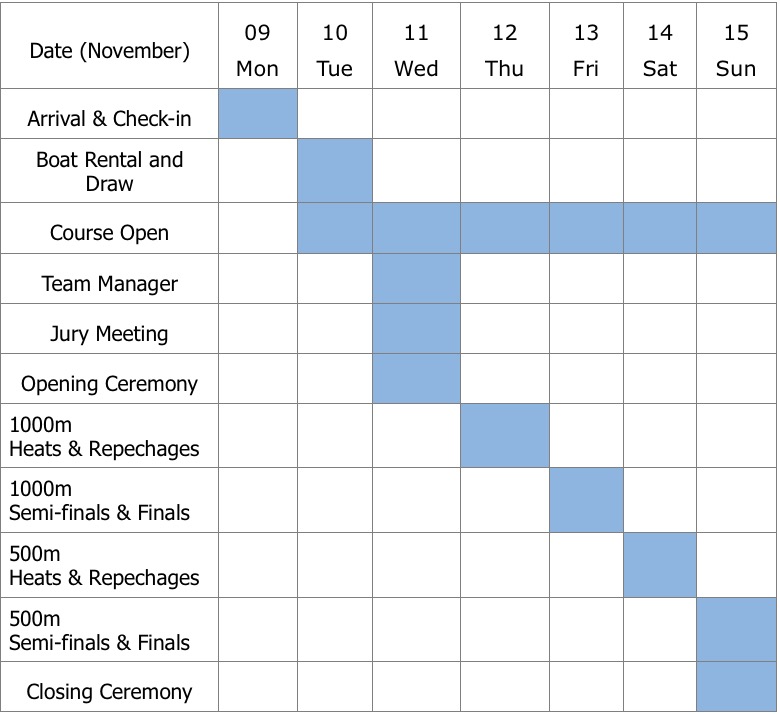 Schedule(Note: This schedule is preliminary and some items may be subject to change. Changes will be notified to all Federations.)