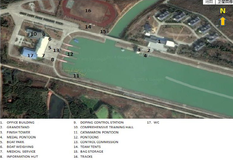 The competition venue, Honglian Lake, is located between the east of city Wuhan and Ezhou. Adjacent to Wuhan-Huangshi Highway, it is a place of convenient transportation. Not only is the Lake famous for its natural beauty, but it is a scenic spot with clean air and national-level freshwater resources. Besides the sports venue, it is also equipped with entertainment facilities, business accommodations, a rehabilitation facility for athletes and a high-tech botanic zone.