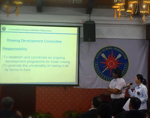 On the first day, on behalf of ARF Executive Committee, ARF Vice President Mr. Nicholas Ee gave a welcome speech to all committee members and briefly introduced the procedure of the joint committee meeting. On behalf of President Wang Shi, Mr. Nicholas Ee announced three appointments approved by Executive Committee —which are Ms. Yin Zhang (CHN) as ARF Executive Director, Ms. Xiaoxuan Bao(CHN) to the Marketing and Promotion Committee; and Mr. Zhijun Yong(CHN) to the Para-Rowing Committee. Ms. Zhang had done a lot detailed work for the ARF Secretariat and will take the responsibility of leading the ARF Secretariat and help support the function of ARF. Ms. Bao is an elite marketing manager in Vanke Company and a lover of sports. Mr. Yong is the deputy Secretary General of Chinese Disabled Persons’ Federation and an active member of Para sports not only in China but also in Asia. The Executive Committee believes that appointments of them will be contributive to the development of rowing sports in Asia.