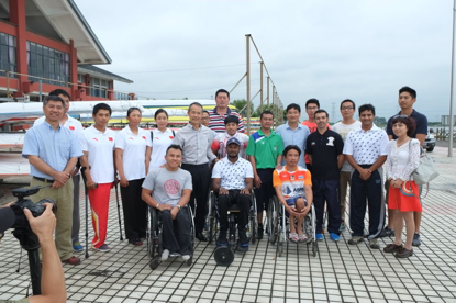 The Asian Para-Rowing Training Camp has been in full swing since July 25th and will be continued to September 21st. Para-Rowing athletes from Afghanistan, Hong Kong, Sri Lanka, Thailand, UAE and China have gathered at FOHO Water Sports Center in Jiashan, Zhejiang Province to get training to improve their performance, and athletes from Korea will also join them in September 10th.In the afternoon of August 23rd, Mr. Wang Shi, President of Asian Rowing Federation, together with Mr. Li Quanhai, President of Chinese Rowing Association, and Mr. Zhang Dan ARF secretary-general arrived at FOHO Water Sports Center. The Group visited the training venue and expressed warm greetings to the coaches and athletes who were participating in the Asian Para-Rowing Training Camp.
